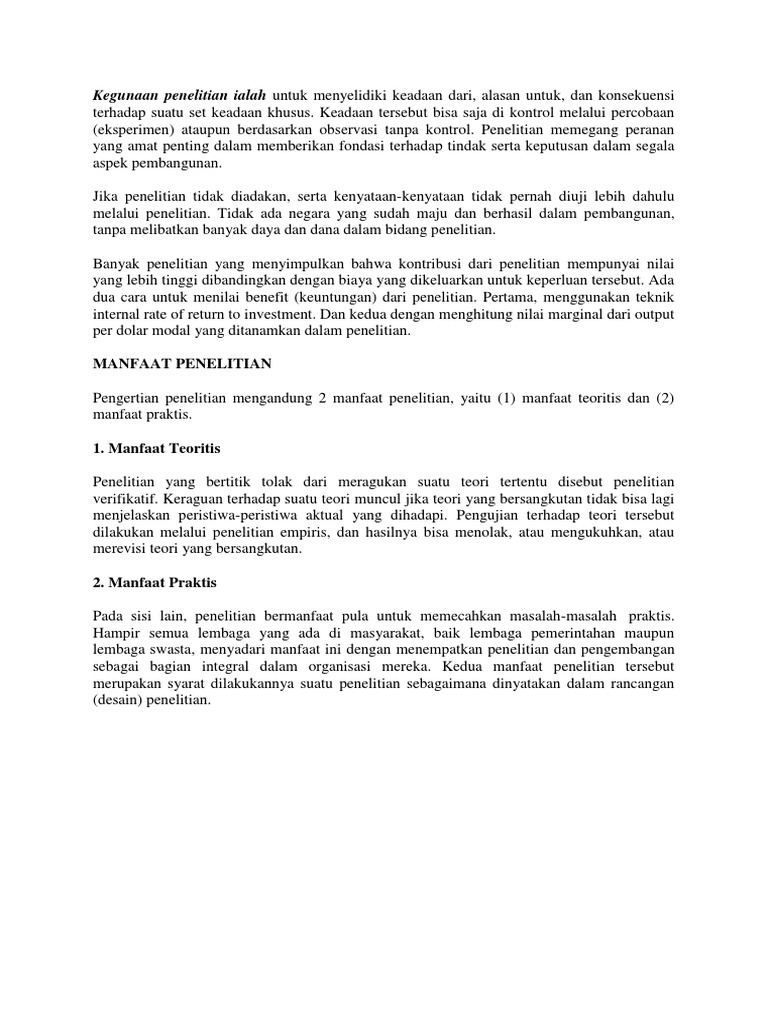 Manfaat konseptual penelitian adalah cara yang berpotensi untuk menginformasikan kebijakan. Contoh manfaat penelitian serta penulisan karya ilmiah,skripsi, makalah, pendidikan serta pengertian, tujuan manfaat penelitian bagi mahasiswa secara lengkap. Manfaat praktis secara praktis penelitian ini dapat bermanfaat sebagai berikut Perkembangan ilmu pengetahuan dan teknologi. Sebutan dalam penulisan kegunaan penelitian seringkali di dasari atas landasan teoriris.
