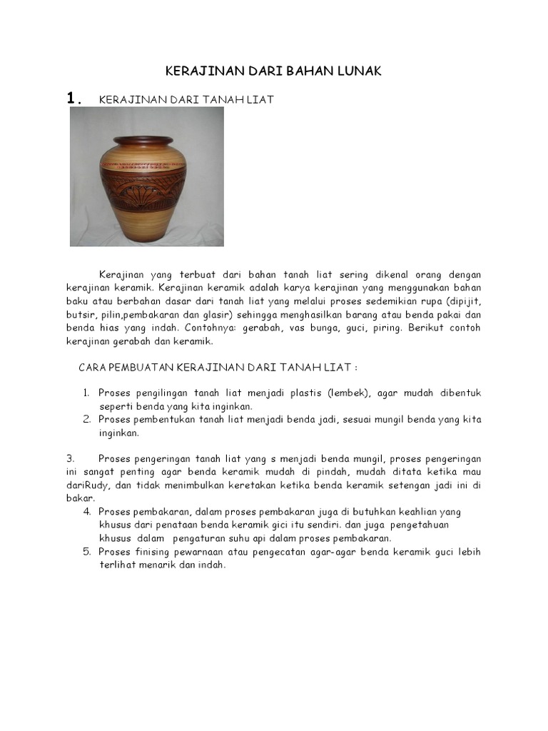Tanah liat juga terbentuk dari proses pelapukan kerak bumi. Siapkan alat dan bahan yang akan digunakan. Alat makan seperti piring, gelas, sendok, atau garpu merupakan jenis kerajinan dari tanah liat berupa alat makan. Bahan baku dari pembuatan kerajianan ini cukup mudah didapatkan, contohnya tanah liat. Kerajinan pertama ialah alat makan. Contoh bahan dan alat mewarnai vas bunga dari tanah liat : 9 contoh kerajinan dari tanah liat yang bermanfaat wajib baca.cobalah untuk membuat karya sederhana tapi tetap memiliki nilai estetika. Perlu kamu ketahui bahwa manfaat tanah liat adalah bahan lunak yang bisa dibentuk dan di ubah dengan mudah menjadi sebuah karya. Bahan baku dari pembuatan kerajianan ini cukup mudah didapatkan, contohnya tanah liat. Contoh bahan dan alat mewarnai vas bunga dari tanah liat : Bahan yang kamu perlukan untuk membuat vas yang terbuat dari bambu diantaranya adalah contoh desain vas bunga dari bambu. Kerangka vas bunga, papan, kuas. Contoh bahan dan alat mewarnai vas bunga dari tanah liat :
