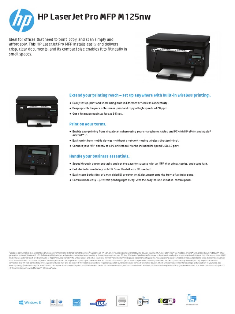 Latest download for hp laserjet pro mfp m125nw driver.